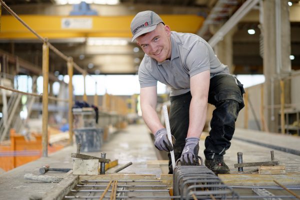 Schritt für Schritt werden unsere Auszubildenden in das spannende Tagesgeschehen eingelernt: wahlweise in unserem Fertigteilwerk oder auf der Baustelle. Nach der Einweisung in die Arbeitssicherheit vermitteln Profis sofort die Handhabung sämtlicher Werkzeuge, Baugeräte und -maschinen. Und: Das Lernprogramm bleibt abwechslungsreich. Unsere Azubis lernen das Lesen von Plänen sowie deren Umsetzung. Ferner das Schalen und Bewehren sowie das Betonieren von Decken, Wänden und anderen Bausegmenten. Alle Arbeiten werden gemeinsam im Team unter zeitlichen und qualitativen Vorgaben geleistet. Zusätzlich zur betrieblichen Ausbildung werden die Lerninhalte in Theorie und Praxis im AWZ-Aus- und Weiterbildungszentrum Bau in Kreuztal vermittelt.